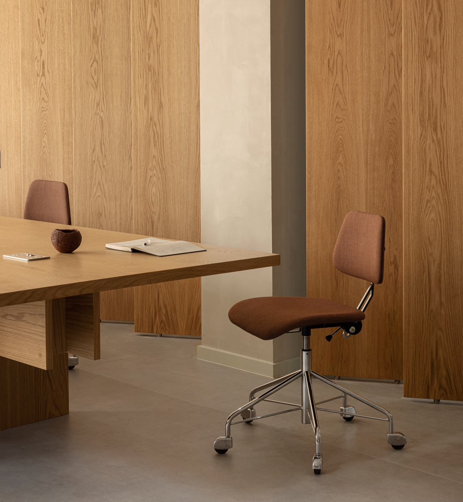 As part of the revitalisation of Labofa’s iconic Heritage Collection, Norm Architects has contributed to the design of the 12.1 Work Chair — a refined, versatile piece that brings comfort and character to both public settings and home office environments. With its lightweight shell, understated silhouette, and excellent sitting comfort, the chair blends timeless aesthetics with functional performance. An integrated gas lift and five-star base offer strength and adaptability, while custom castor caps pay tribute to Labofa’s original mid-century design.