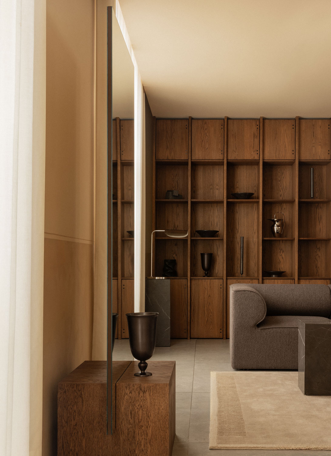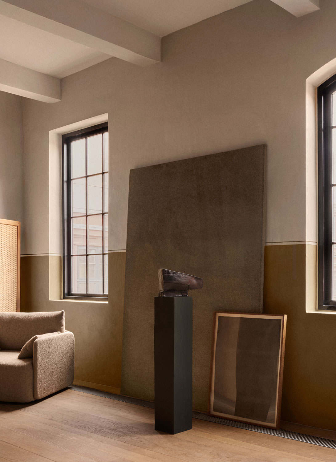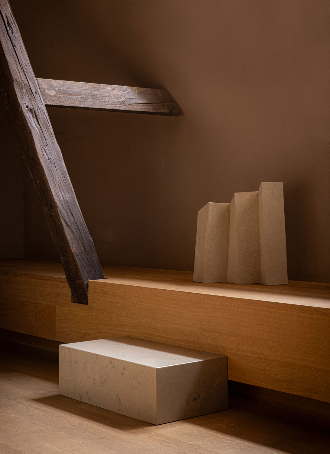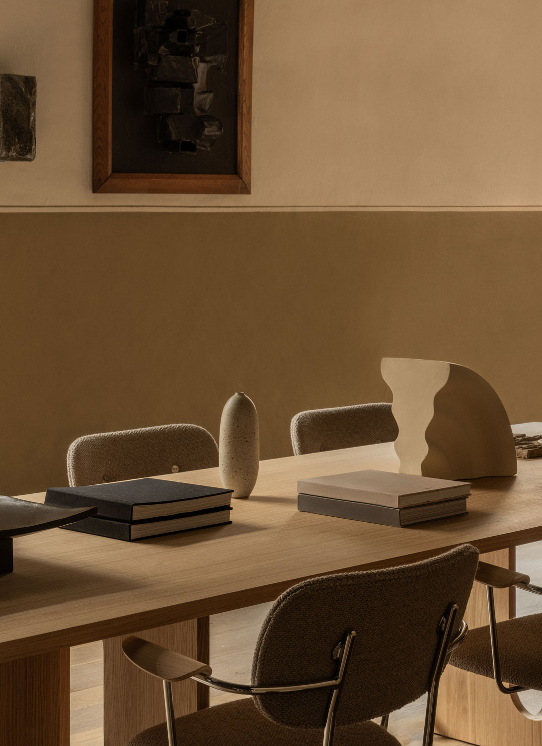 Most recently redefined through the exhibition MONUMENTS in 2025, Audo House was transformed into an evocative exploration of form, texture, and time. Inspired by Copenhagen’s Neo-Classical heritage and the quiet restraint of modern minimalism, the installation unfolded across the house’s many functions. The interventions on the ground floor, originally designed for the exhibition, were made permanent, becoming a lasting part of the space. Each room now contributes to a narrative that celebrates monumentality not as grandeur, but as presence, longevity, and emotional weight.