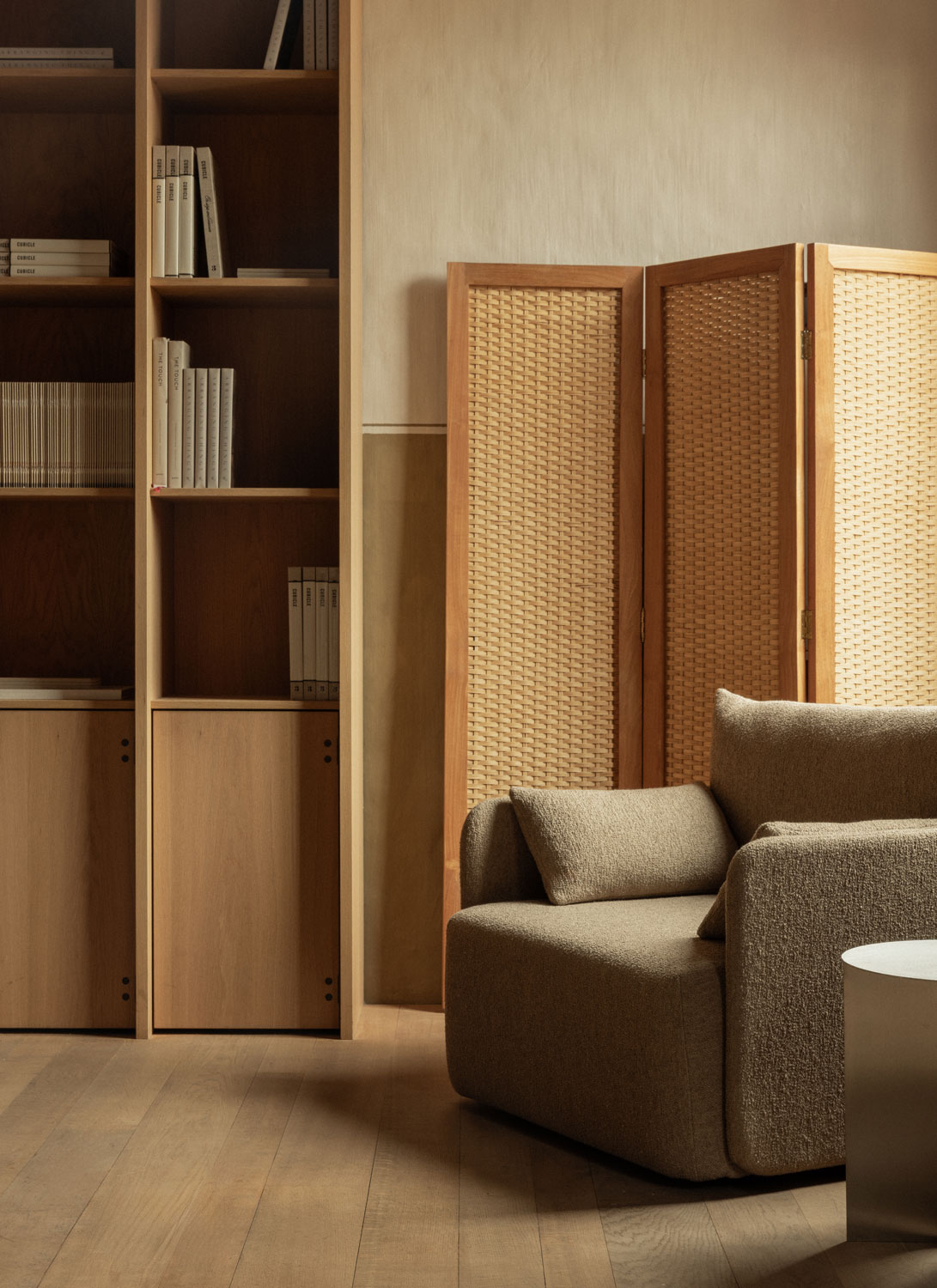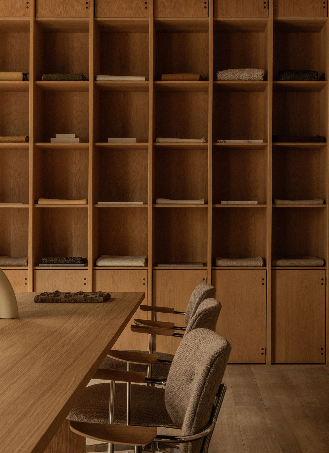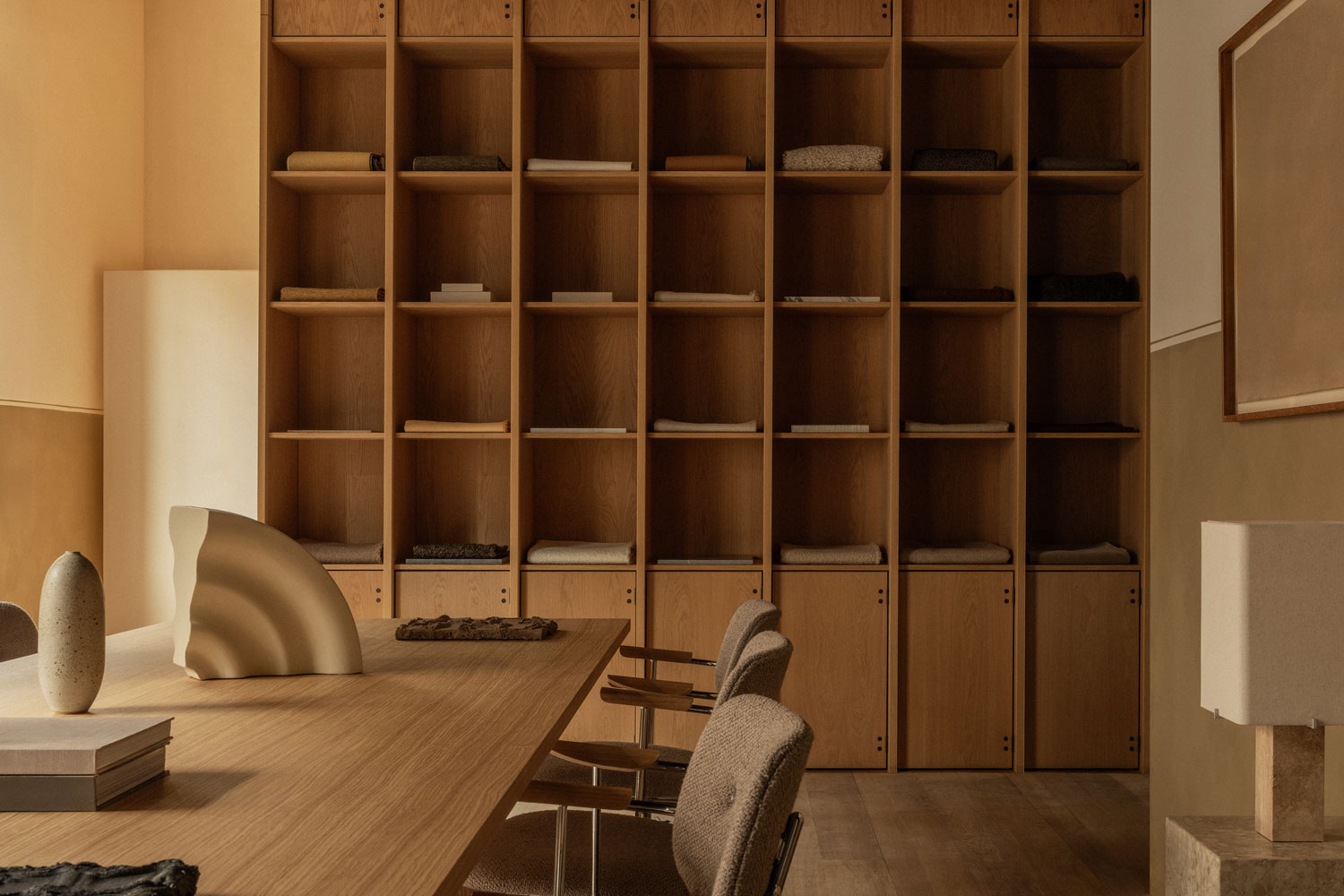 Throughout the space, bespoke and inbuilt shelving adds both function and character – carefully crafted to integrate storage and display without interrupting the calm, minimalist aesthetic. These thoughtfully designed elements provide practical solutions while also contributing to the home-like atmosphere that defines Audo House.