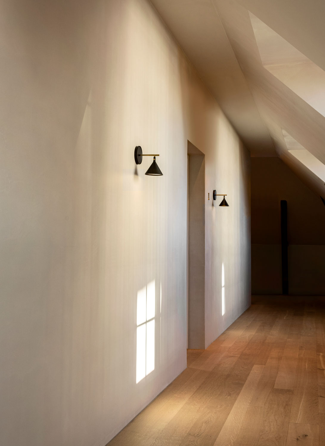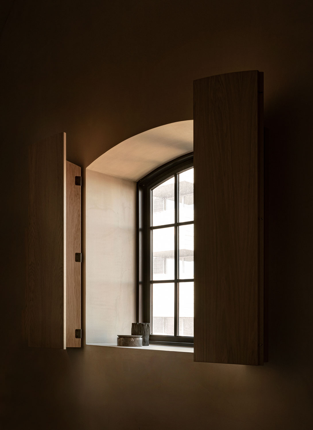 The hallways balance restraint with quiet storytelling. Minimal and pared-back, they allow subtle details – traces of the building’s history and architectural heritage – to emerge, creating a rhythm of discovery that connects the past with the present.