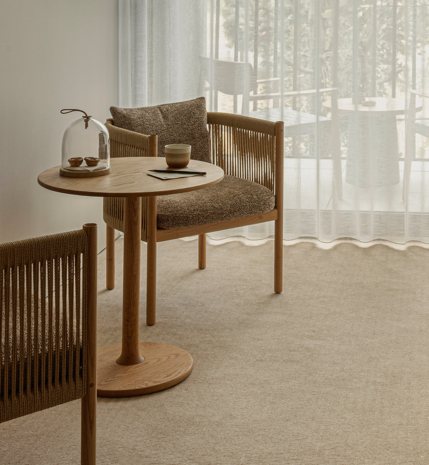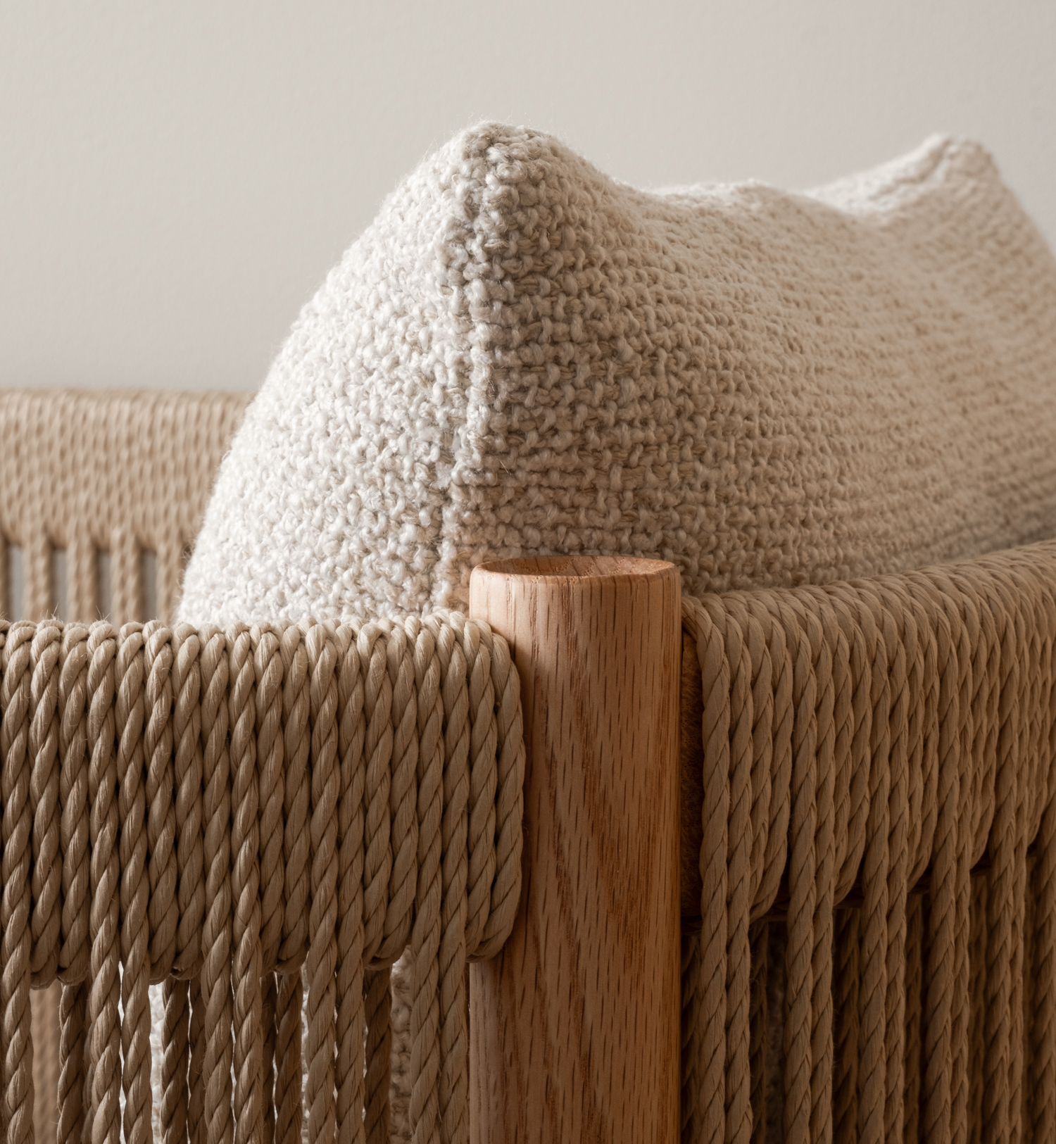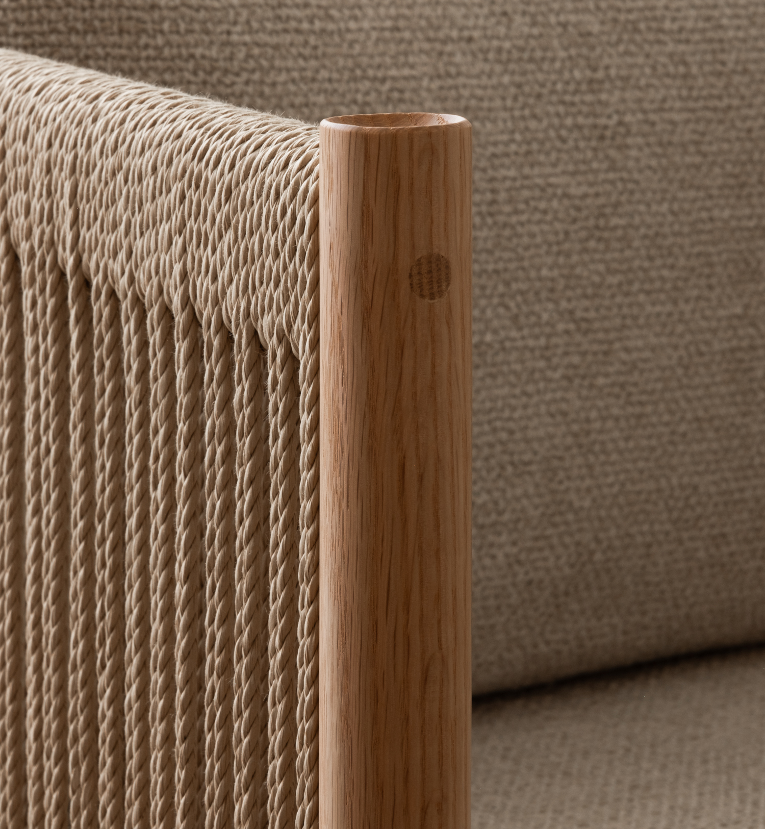 Inspired by traditional bamboo craftsmanship and tatami patterns, and subtly referencing Danish cabinetmakers like Børge Mogensen, Hans Bølling, and Finn Juhl, the collection combines warmth and restraint in a refined mix of solid oak, rich textile and braided paper cord.