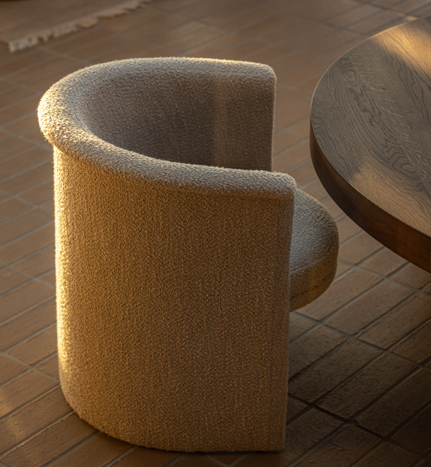 Originally designed for TRUNK Hotel Yoyogi Park in Japan and later refined for Vinhuset, the club chair embodies a careful balance between comfort and architectural clarity. Its form is defined by a continuous, softly curved silhouette that wraps around the body, creating an immediate sense of ease.
