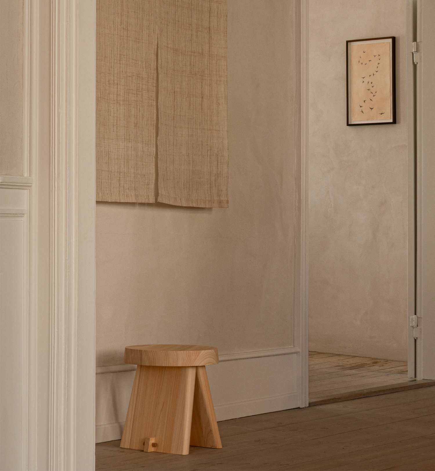 Crafted from locally sourced Japanese Hinoki using time-honoured joinery techniques, the stool embodies a shared dedication to craft, material integrity, and quiet beauty.