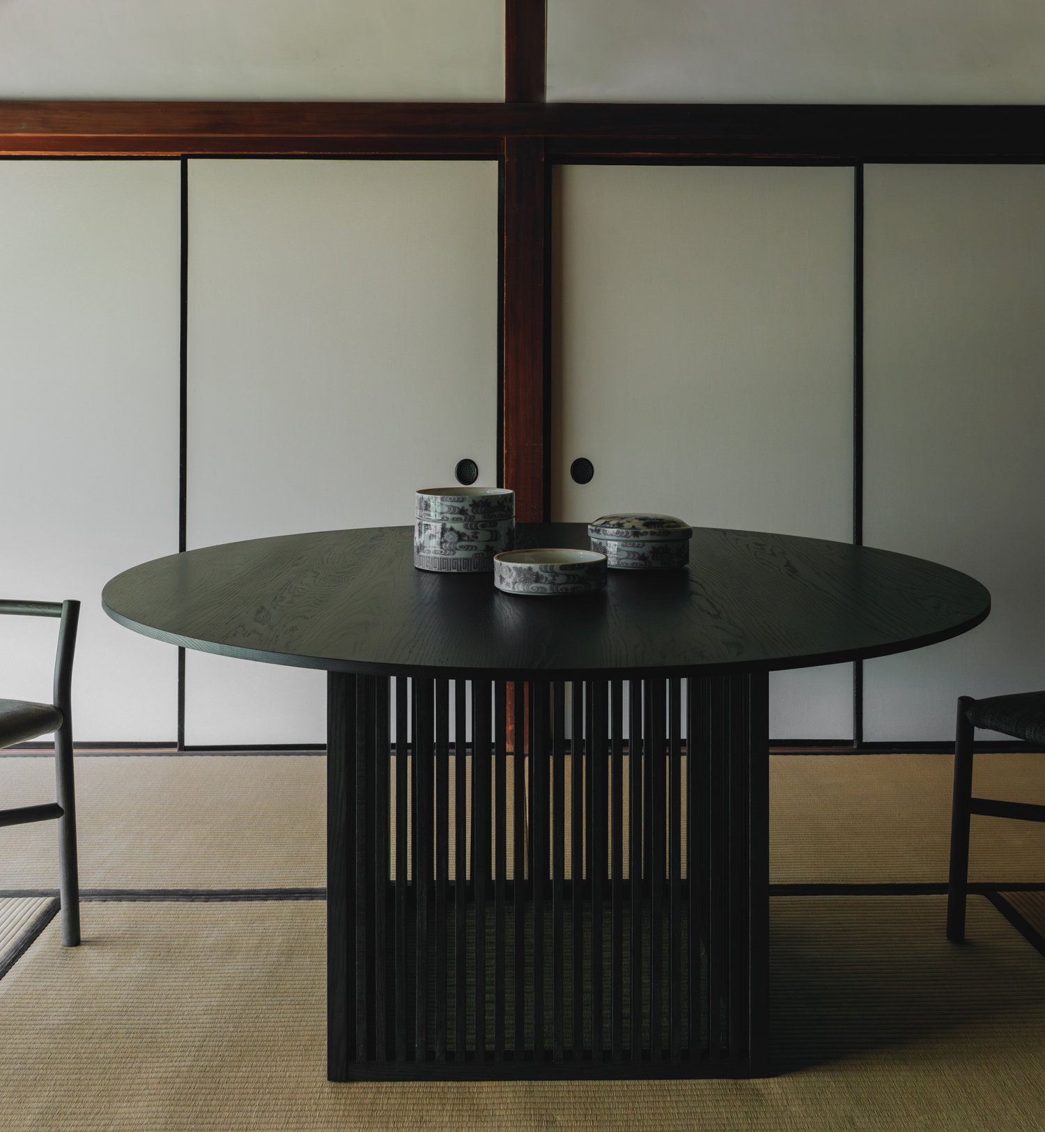 This variation of the Lattice Table brings a circular tabletop into dialogue with a square, grounded base, creating a composed tension between geometry and balance. The round surface encourages gathering and movement, while the square lattice below anchors the table with architectural clarity and proportion.