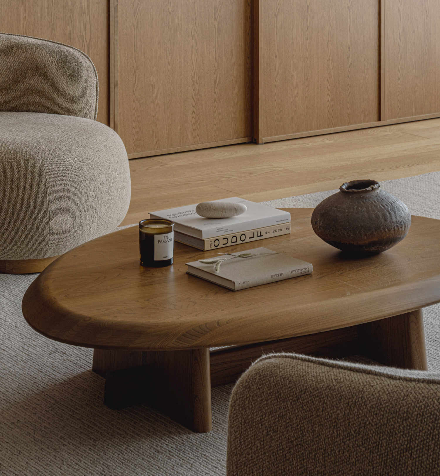 With its organic curves and solid foundation the ’N-CT04 | Coffee Table’ adds to the Karimoku Case collection as a timeless piece, resonating with any interior setting. The soft, gentle lines of the base and table top beautifully reflect the light, assuming sculptural qualities.