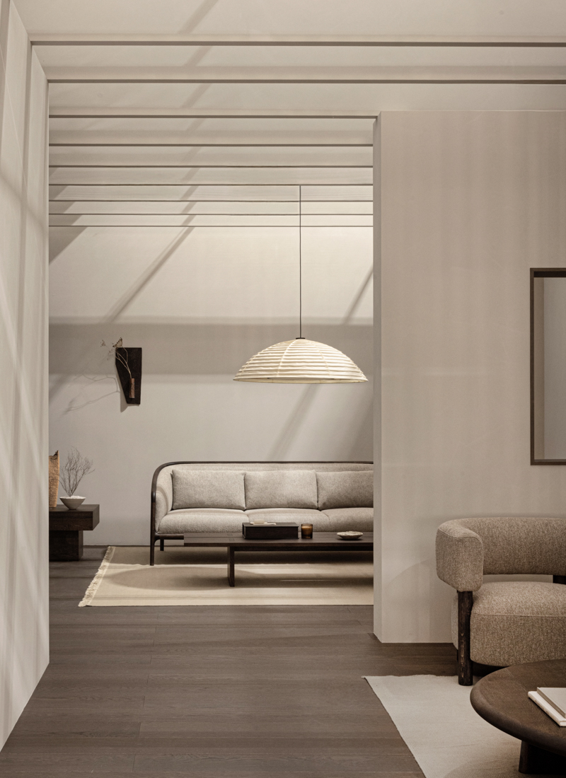 A study in contrasts and calm, ‘A Sense of Serenity’ presents Karimoku Case in a space defined by tactile richness, subdued tones, and timeless design.